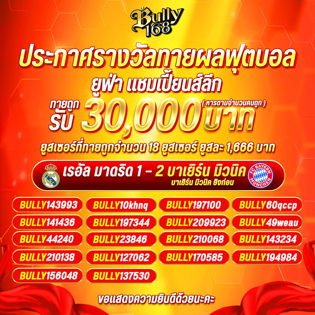 ✨ประกาศรางวัลกิจกรรมทายผลฟุตบอล ยูฟ่า แชมเปี้ยนส์ลีก